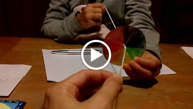 Inizia ora l'esperimento: arrotolate lo spago (per entrambe i capi si arrotola nello stesso verso) tenendo fermo il cerchio. Ora è arrivato il momento magico: lasciar andare il cerchio e osservare la magia.